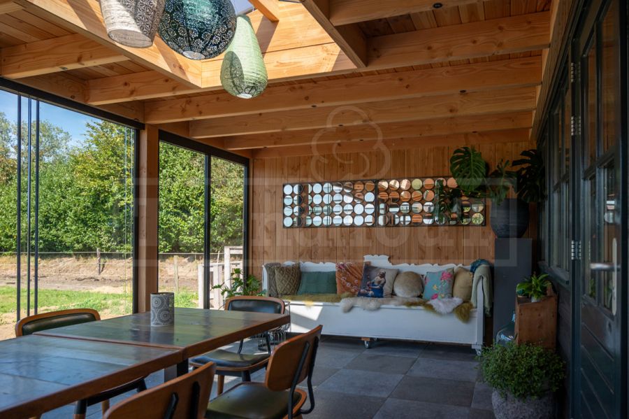 Aanbouwveranda Modena is beschikbaar in drie dieptes en meerdere breedtes. Afwijkende maten zijn op aanvraag mogelijk.