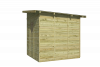 Deze grenen berging biedt met zijn oppervlakte van 200x200 cm voldoende ruimte voor al uw tuingereedschap. Dankzij het kunststof raam aan de zijkant heeft u aan licht geen gebrek. Een ideale berging die past in iedere tuin!