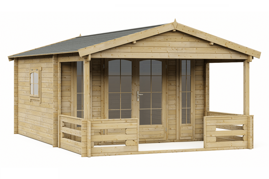 Interflex-blokhut 3838L 380x380 cm heeft een ruime voorluifel van 200 cm. Zo kunt u bijvoorbeeld een mooie overdekte zitplek creëren of uw fietsen droog neerzetten. Met de wind- en waterdichte hoekverbindingen blijven uw spullen veilig en droog opgeborgen staan.