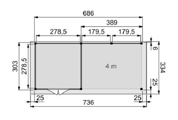 | Funderingsmaat inclusief funderingsbalken | 736x334 cm |