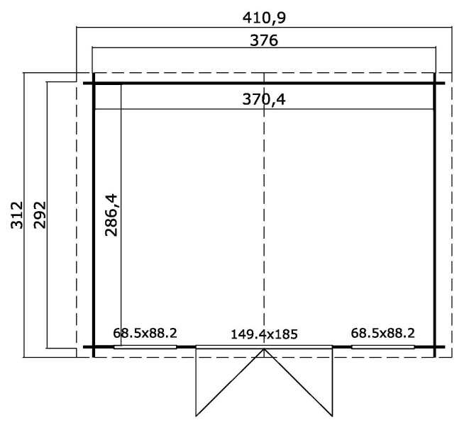 Door de grote ramen en deuren geniet je volop van het daglicht. De blokhut kan dienen als een opbergplek of als een werkplaats.