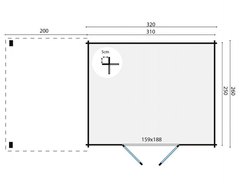 | Funderingsmaat inclusief funderingsbalken | 319x259 cm |