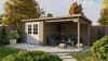 Tuindeco-blokhut Freddy 300x250 cm geïmpregneerd heeft een strakke uitstraling en is een blikvanger in uw tuin. Met de ruime zijluifel van 298 cm kunt u bijvoorbeeld de fietsen neer te zetten of om een heerlijke zitplek te creëren. Met de wind- en waterdichte hoekverbindingen blijven al uw spullen veilig en droog staan.