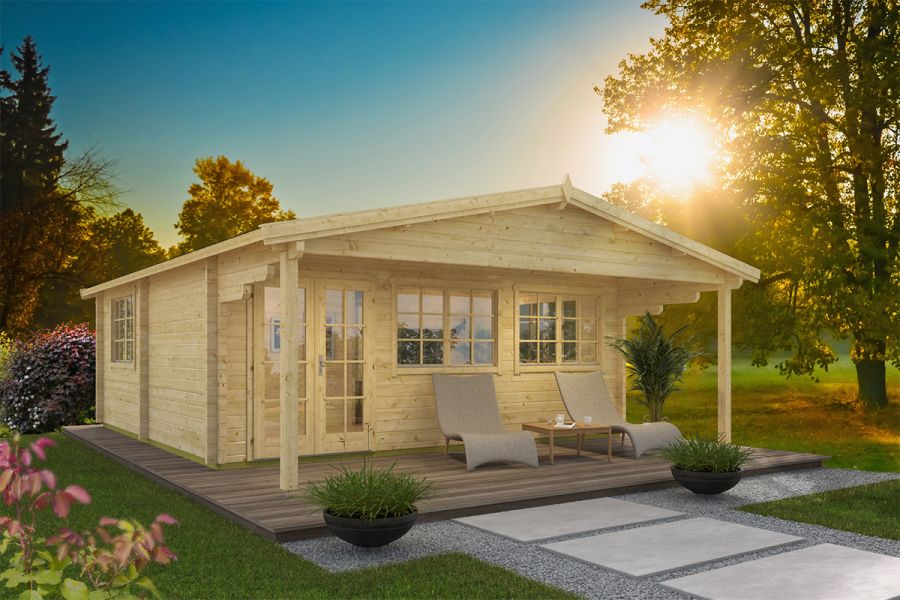 Blokhut Jackson van Tuindeco wordt standaard blank uitgevoerd in 70 mm wanddelen met een dubbele deur en dubbel glas. De blokhut heeft 5 ramen van 71x122 cm die u kunt openen. Er wordt uiteraard een bouwtekening meegeleverd, zodat u de blokhut ook zelf kunt opbouwen.