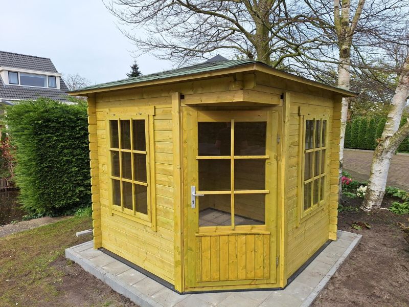 De geïmpregneerde variant op de blokhut Jos van Tuindeco wordt standaard uitgevoerd in 28 mm wanddelen met een enkele deur en enkel glas. De blokhut is verduurzaamd middels groene impregnatie. Op deze manier is uw blokhut beter beschermd tegen schimmel en rot. Er wordt zelfs een bouwtekening meegeleverd, zodat u de blokhut ook zelf kunt opbouwen.