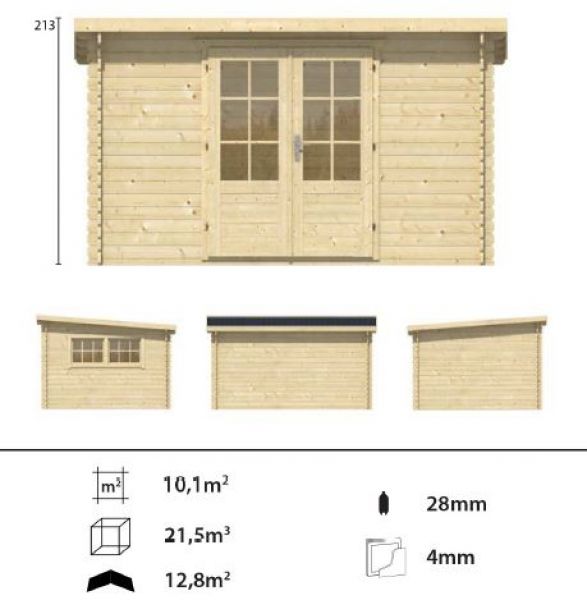 | Extra informatie | Deze blokhut heeft wind en waterdichte hoekverbindingen |