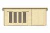 Blokhut Meg van Tuindeco wordt standaard blank uitgevoerd in 44 mm wanddelen met dubbel glas. De blokhut heeft een enkele deur, een dubbele schuifdeur en een normale dubbele deur. Er wordt zelfs een bouwtekening meegeleverd, zodat u de blokhut ook zelf kunt opbouwen.