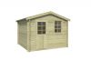 Door de dubbele deuren heeft u een makkelijke toegang tot de blokhut. In de deuren is helder glas van 4 mm dikte geplaatst. De blokhut is verduurzaamd middels groene druk-impregnatie.