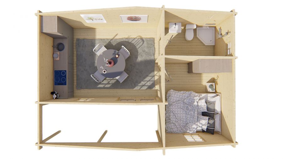 Blokhut Ollie van Tuindeco wordt standaard blank uitgevoerd in 70 mm wanddelen. Let op: deze blokhut wordt geleverd exclusief ramen en deuren. Deze kunt u optioneel meebestellen. Tegen een meerprijs bieden wij de mogelijkheid om de blokhut geïmpregneerd te leveren. Met een mooie oppervlakte van 731x498 cm heeft de blokhut veel ruimte voor een lage prijs. De houten vloer en dakplanken hebben een dikte van 27 mm, wat deze blokhut ideaal maakt voor isolatie. Er wordt zelfs een bouwtekening meegeleverd, zodat u de blokhut ook zelf kunt opbouwen.