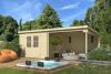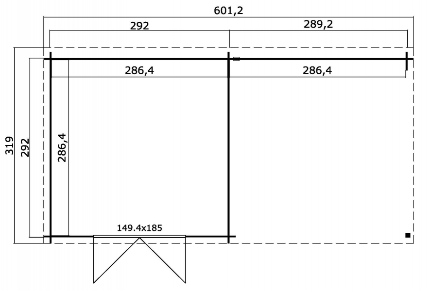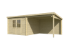 De indeling van deze blokhut Orlando is een berging van 292x292cm en een overkapping van 289,2x292cm. U kunt zelf bepalen waar de overkapping moet komen, de overkapping van de blokhut Orlando is zowel links als rechts te plaatsen. Het afgesloten gedeelte kunt u perfect gebruiken als bijvoorbeeld opbergruimte.