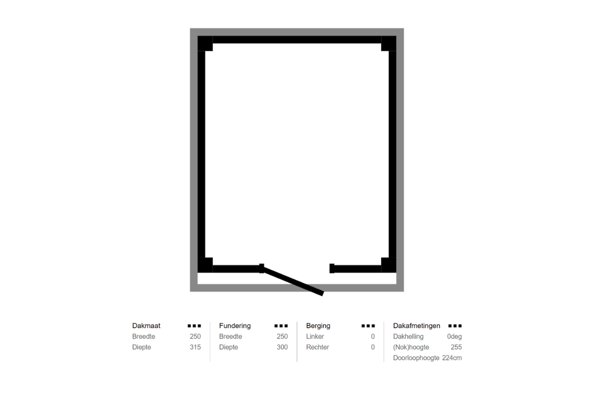 | Afmeting berging | 250x300 cm |