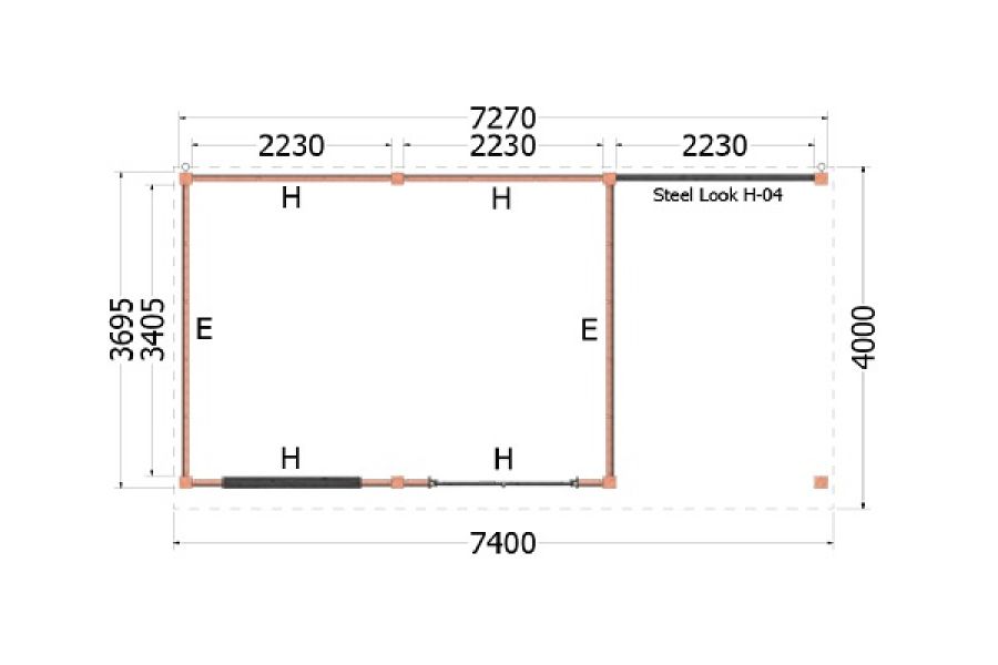 - Afmeting van 740x400 cm
