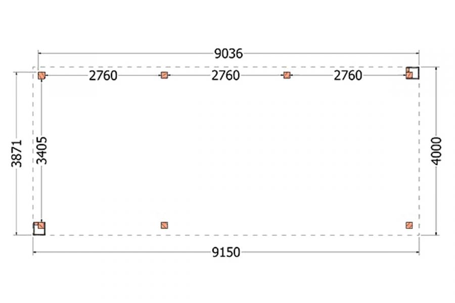 - Afmeting van 915x400 cm