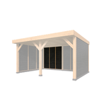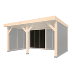 Deze doe-het-zelf overkapping wordt geleverd met alle benodigde bevestigingsmaterialen en een bouwtekening, waardoor het eenvoudig is om zelf te monteren en op maat te zagen. Het materiaal is van hoogwaardig hout, met een ringbalk van 15 x 15 cm, sporen van 6,3 x 17,5 cm en staanders van 15x15 cm. De modulaire structuur zorgt voor flexibiliteit in het ontwerp en de installatie.