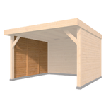 Het platte dak, met een dakbeschot van 1,8 x 19 cm, geeft een moderne uitstraling en biedt stevige bescherming.