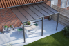 Deze Doe-Het-Zelf veranda Smartline wordt geleverd als een compact bouwpakket. De onderdelen van dit pakket hoeven niet op maat gezaagd te worden, en is door het schroef/plug-systeem eenvoudig te monteren. De Smartline heeft zeker een aantal voordelen. Zoals de geïntegreerde hemelwaterafvoer, hierbij wordt het regenwater aan de voorzijde van de staander afgevoerd. Ook kan de veranda rechtstreeks op de ondergrond vastgeschroefd worden, doordat de staanders uitgevoerd zijn met vloerbevestiging. En door de 10 mm heldere polycarbonaatplaten profiteert u van optimaal lichtinval!