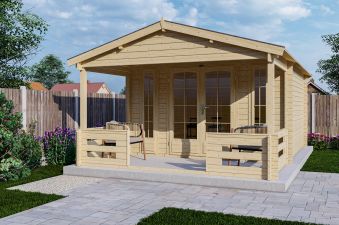 Een royale houten garage met een klassieke uitstraling. Gemaakt van massief Noord-Europees vurenhout van 40 millimeter dik, waardoor de constructie stevig en duurzaam is. De dubbele garagedeur zorgt voor een brede doorgang, terwijl de zijdeur met raam extra licht en toegang biedt.