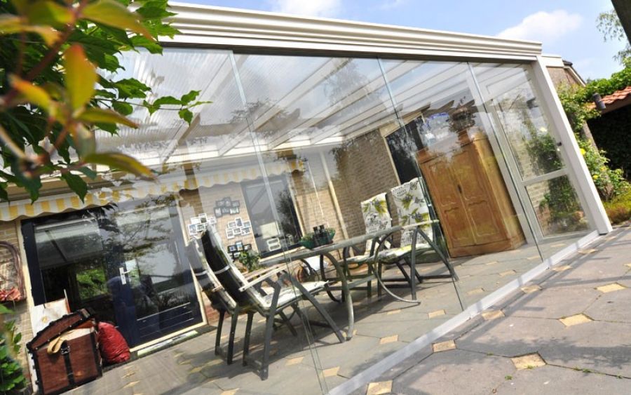 Wilt u het hele jaar door genieten van uw Profiline veranda? Dat kan met deze 4 sporige glasschuifwand! De glasschuifwand biedt de mogelijkheid om uw veranda wind- en waterdicht af te sluiten! De volledige 10 mm dikke veiligheidsglaswanden zorgen voor een maximaal doorzicht, zodat het open effect van uw veranda niet verloren gaat. 4 sporig houdt in dat de gehele glasschuifwand uit 4 glasdelen.