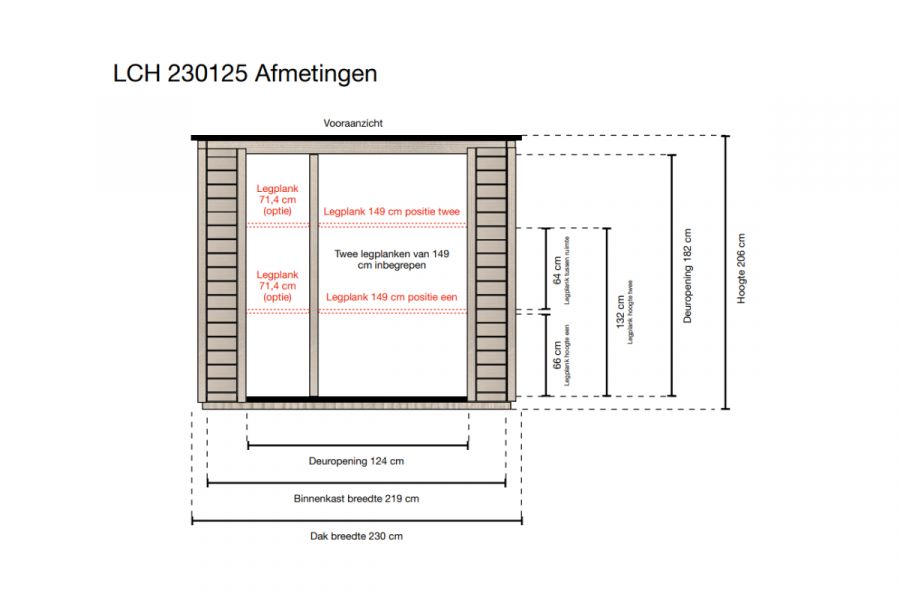 Deze tuinkast heeft royale afmetingen van 230x118x206 cm en biedt voldoende ruimte om uw tuinaccessoires georganiseerd te houden. De tuinkast is vervaardigd uit weerbestendig Scandinavisch vurenhout, wat bekend staat om zijn duurzaamheid en natuurlijke uitstraling. Dit hout is bestand tegen verschillende weersomstandigheden, waardoor uw opgeslagen spullen altijd veilig en droog blijven, ongeacht het seizoen.