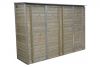 Met de Hoge Tuinkast van Lutrabox krijgt u een uitstekende oplossing voor het opbergen van uw tuinspullen, gereedschap en meer. Deze tuinkast heeft royale afmetingen van 305x82x180 cm en biedt voldoende ruimte om uw tuinaccessoires georganiseerd te houden. De tuinkast is vervaardigd uit weerbestendig Scandinavisch vurenhout, wat bekend staat om zijn duurzaamheid en natuurlijke uitstraling. Dit hout is bestand tegen verschillende weersomstandigheden, waardoor uw opgeslagen spullen altijd veilig en droog blijven, ongeacht het seizoen.