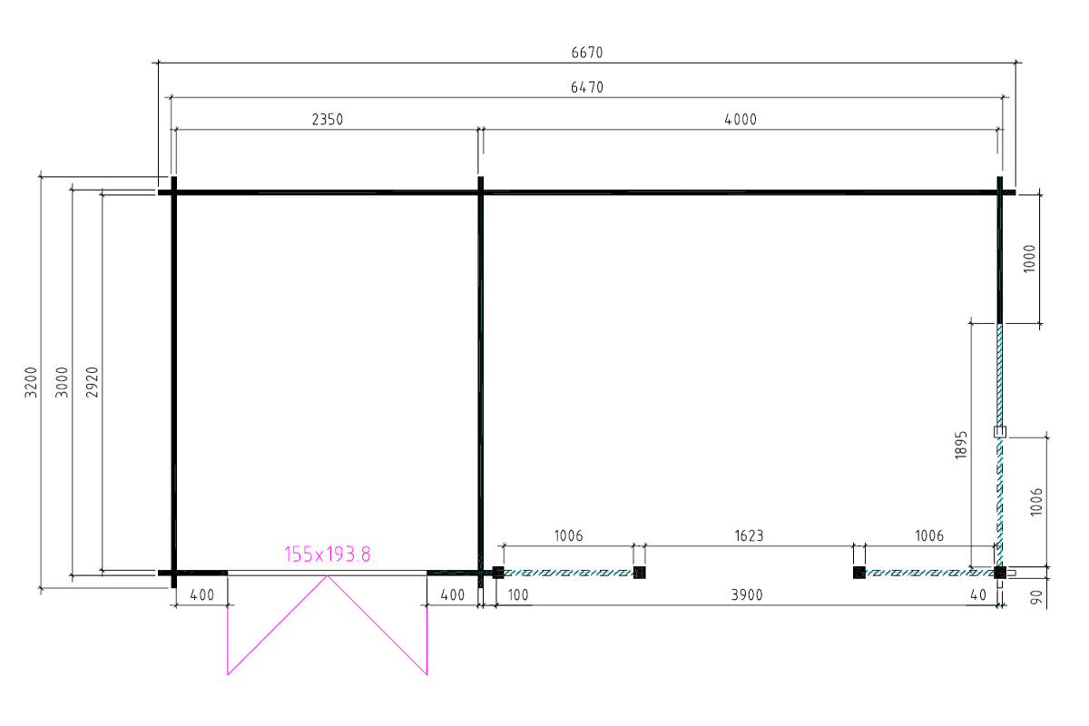 | Funderingsmaat inclusief funderingsbalken | 655x308 cm |