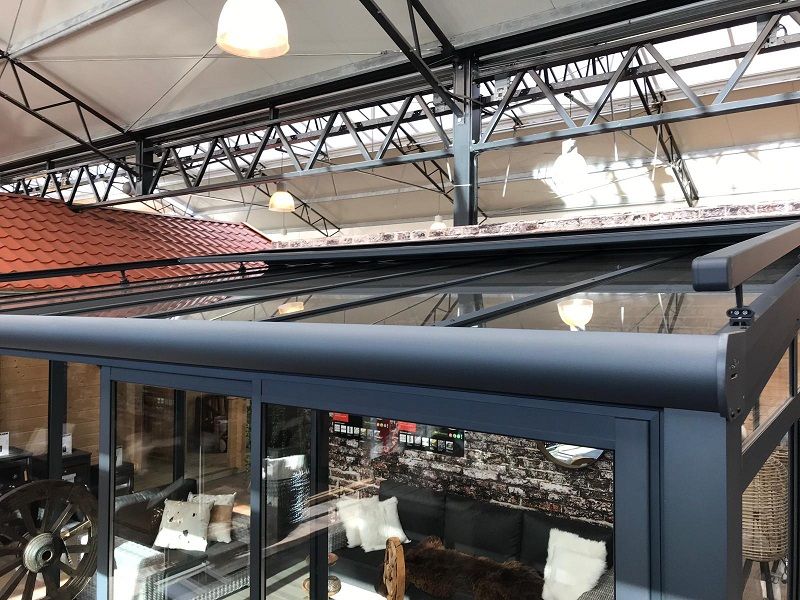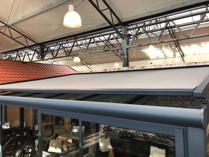 Een 2-delig bovendakzonwering met afmetingen van 526x300 cm. Deze zonwering heeft een omkasting met antraciet kleur en is inclusief Somfy motor, bedieningszijde rechts. De motor is geschikt voor een 4-kanaals afstandbediening, deze kan tegen een meerprijs meegeleverd worden. Kleur doek is 70.2516.