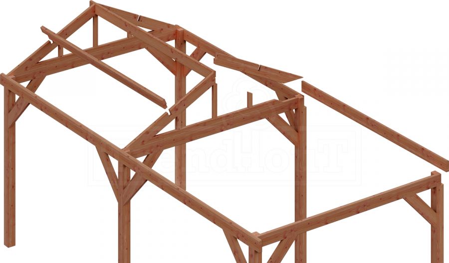 De overkapping wordt standaard geleverd exclusief dakbedekking maar kan eventueel met dakshingles, dakpanprofielplaten, echte dakpannen of met riet geleverd worden!