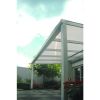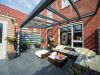 De veranda is voorzien van polycarbonaat dakbedekking. Dit heeft als voordeel dat het zeer licht, goed bewerkbaar en bovendien vrijwel onbreekbaar is. Polycarbonaat biedt meerdere opties voor een hogere zon- en hittewering. De veranda wordt ondersteund door 2 staanders.