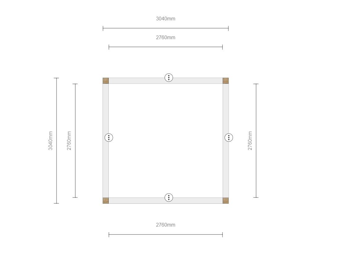 De basis bestaat uit robuuste staanders en ringbalken van 140x140 mm in combinatie met stevige gordingen. Het dak is afgewerkt met sponningplanken en wordt compleet geleverd met EPDM dakbedekking, aluminium daktrim en een PVC hemelwaterafvoer.