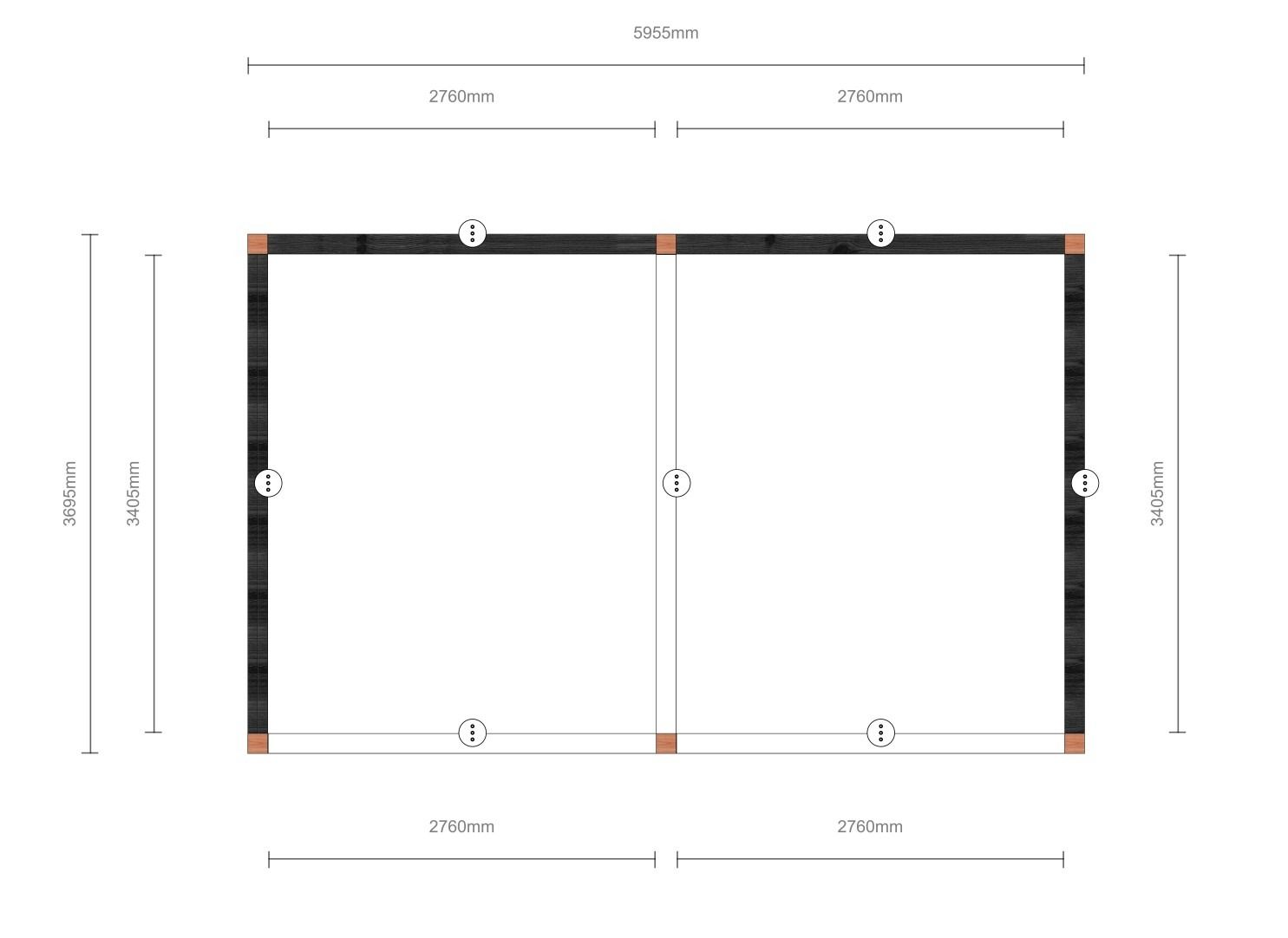 De overkapping Siena 6400x4150 mm wordt geleverd als een compleet totaalpakket, precies zoals op de foto’s is weergegeven. Alles wat nodig is om deze stijlvolle overkapping te realiseren, is inbegrepen: van het houtwerk tot de dakafwerking en het bevestigingsmateriaal. Wilt u het product nog verder naar uw wensen aanpassen? Ga dan aan de slag met de 3D-configurator of kom langs in een van onze showrooms.