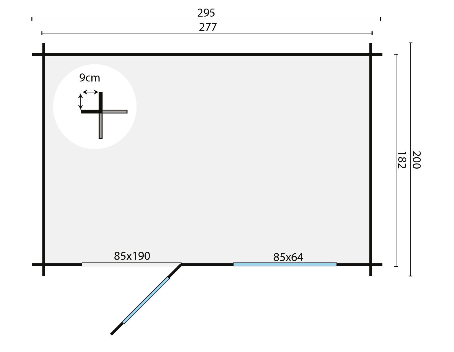 Blokhut Sten van Tuindeco wordt standaard blank uitgevoerd in 28 mm wanddelen, met een enkele deur en enkel glas. Met een mooie oppervlakte van 295x200 cm heeft de blokhut veel bergruimte voor een lage prijs. Er wordt zelfs een bouwtekening meegeleverd, zodat u de blokhut ook zelf kunt opbouwen. Hier kunt u zelf kiezen of u de voorwand van de blokhut wilt spiegelen.