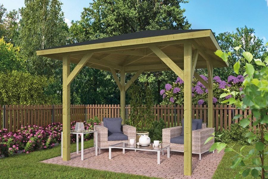 Met het Prieel Tourist 340x340 cm van Tuindeco haalt u een charmant en praktisch element in uw tuin. Dit sfeervolle prieel van 340x340 cm biedt u een ideale plek om te genieten van de buitenlucht en geeft uw buitenruimte een vleugje elegantie. Dit prieel is gemaakt van geïmpregneerd Noord-Europees vurenhout.
