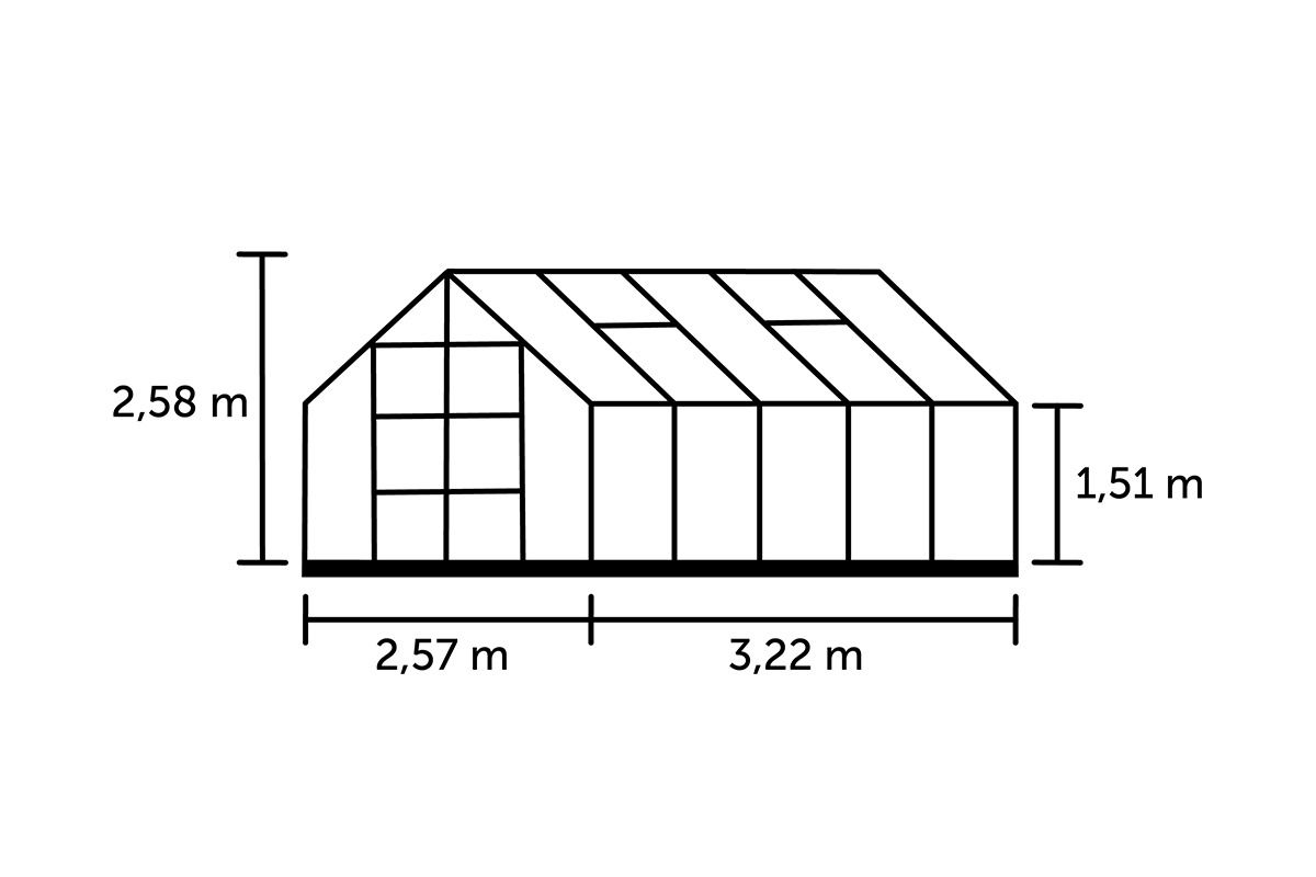 Robuust en hoog design: Met een nokhoogte van 258 cm biedt de Magnum 108 voldoende groeiruimte voor verschillende gewassen. Wil je nog meer hoogte? Met de optionele 12 cm stalen fundering verhoog je de kas tot een indrukwekkende 270 cm. Dit zorgt niet alleen voor extra ruimte, maar ook voor extra stabiliteit.